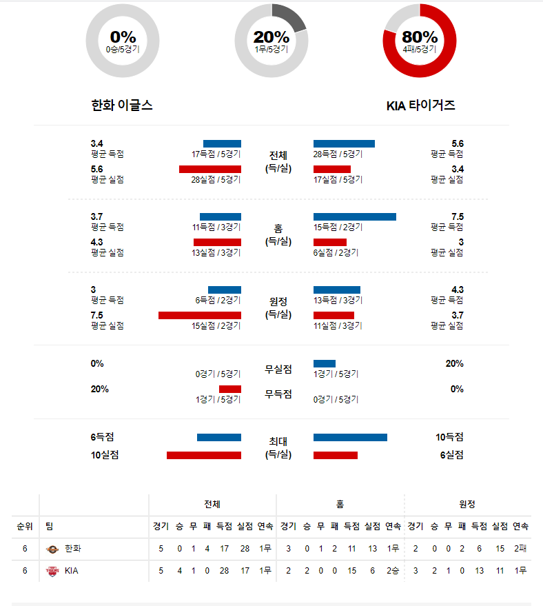 키움 상대로 3연패를 당한 한화. 3경기 모두 6~7회에 무너지며 경기를 내줬다. 불펜진이 흔들리고 있고 선발투수로 불안한 김민우가 등판하는 만큼 키움의 강타선을 5.2이닝 1실점으로 막은 애런 브룩스와의 선발 싸움에서 아무래도 열세가 예상된다는 점. 기아가 터커의 맹활약으로 삼성전 스윕을 막고 분위기를 반전했다는 것을 고려하면 기아의 우세가 예상되는 경기다.