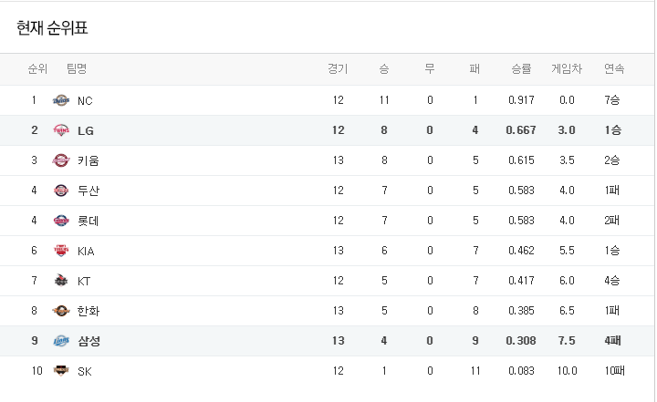 LG는 일요일 키움전 패배로 6연승을 마감했지만 삼성의 뷰캐넌을 상대로 3개의 홈런 포함 10점을 뽑아내며 비교적 쉽게 1차전을 잡아냈다. 외국인 타자 라모스가 5호 홈런을 기록하며 2009년 페타지니 이후 최고의 활약을 보여주고 있고 이천웅,오지환도 홈런포를 가동하는 모습. 상위타선의 짜임새를 통해 좋은 흐름을 이어가고 있다. 더불어 첫 등판에서 불안했던 에이스 타일러 윌슨이 SK 상대로 한결 나아진 투구를 펼치며 6이닝 2실점을 기록했고 삼성 상대로 지난 시즌 7경기 4승무패 2.20으로 강했다는 것도 고무적. 통산 10경기 6승무패 2.07에 타자 친화구장인 라팍에서도 3경기 3승 1.80으로 삼성의 천적으로 군림해왔다.