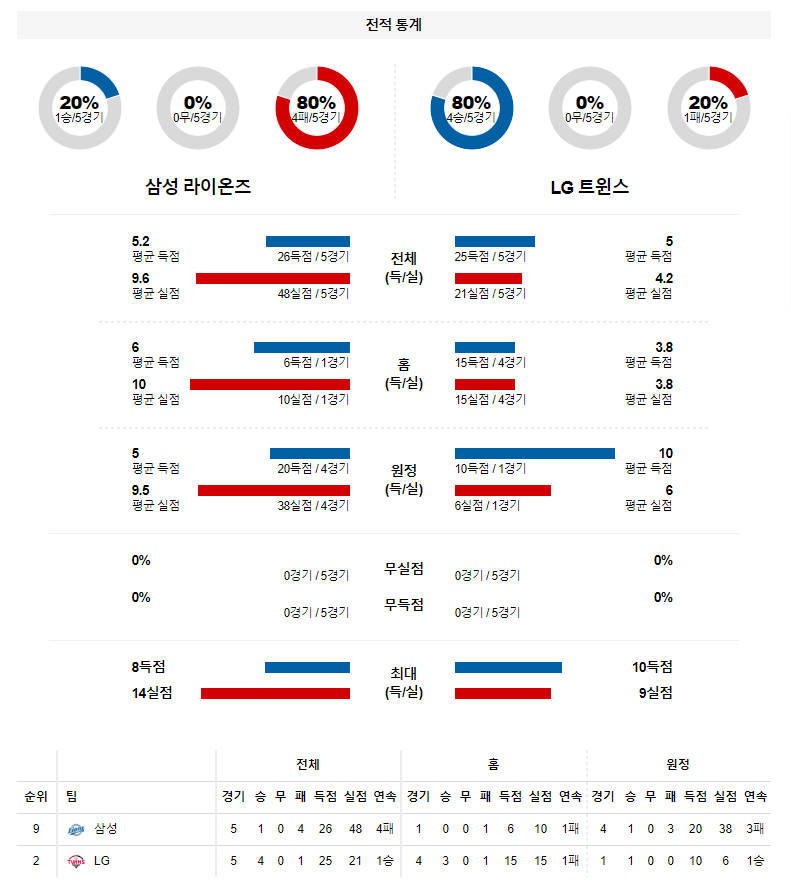 뷰캐넌이 5이닝 10실점을 허용하며 무너진 삼성. 최근 4경기 43실점을 허용할 정도로 투수진이 무너지고 있는 상태다. 백정현,라이블리의 부상으로 이번 주 로테이션 가동에도 어려움이 있는 가운데 LG 타자들의 타격감이 워낙 좋고 삼성의 천적 타일러 윌슨이 등판하는 만큼 LG가 전날 승리의 기세를 이어갈 수 있을 것으로 예상한다.