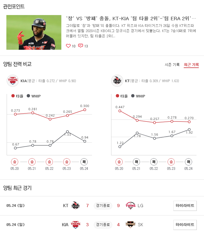 [이에스볼_KBO] 5월 26일 KT 기아 국내야구 Esball 스포츠 분석