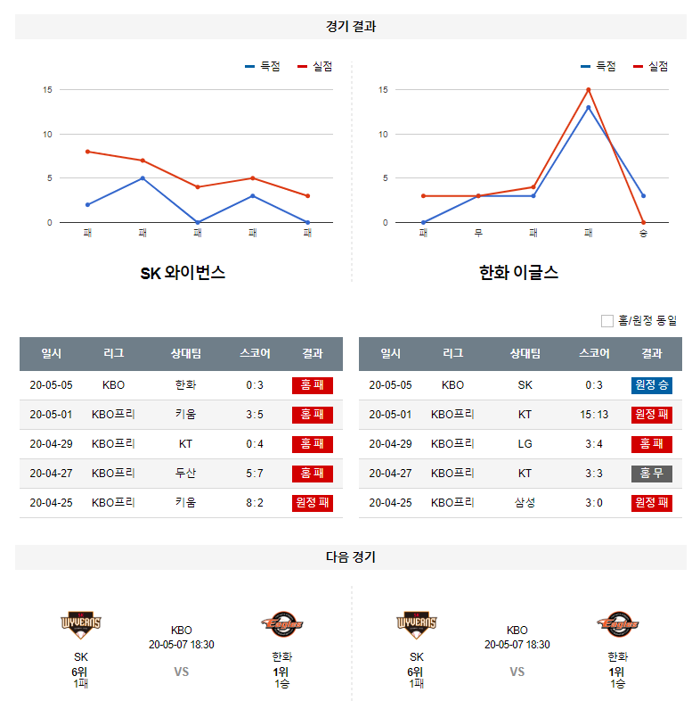 한화 VS SK