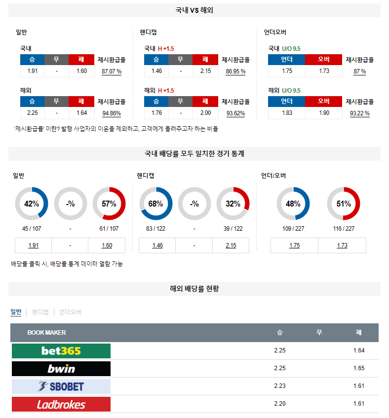 핸디캡: 홈팀 기준 +1.5 핸디캡 패