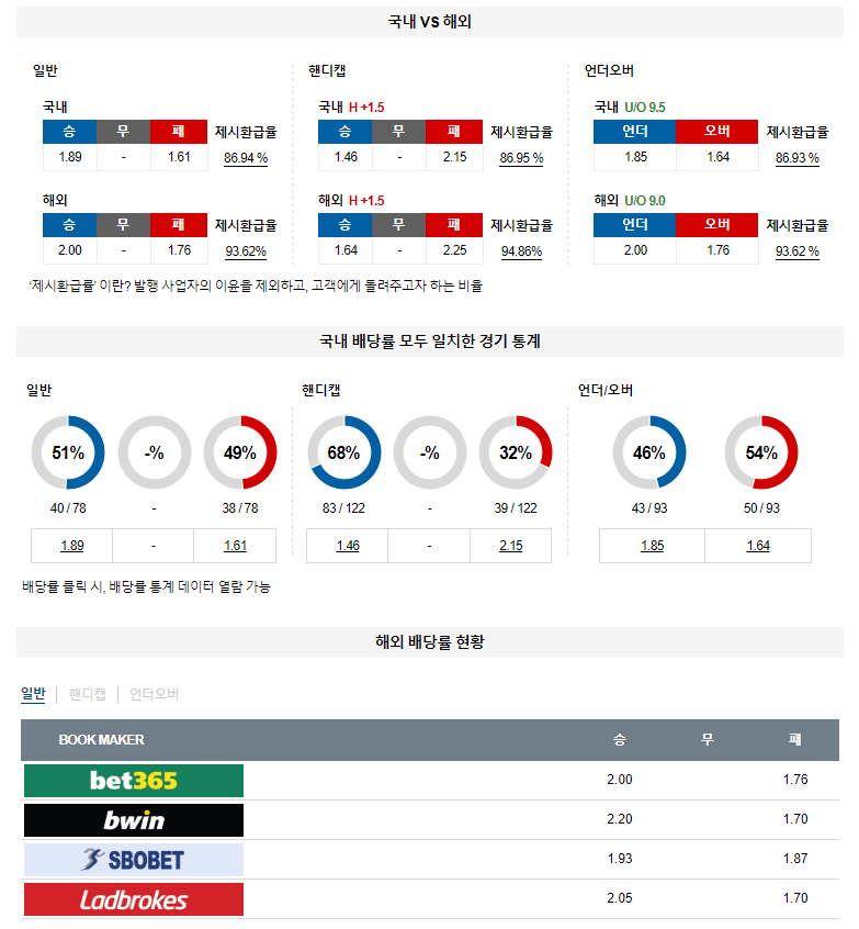 핸디캡: 홈팀 기준 +1.5 핸디캡 승