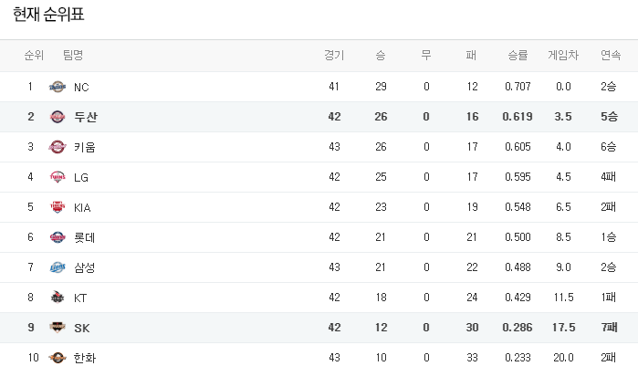 유희관이 무너지는 것을 제외하면 뚜렷한 변수가 없다.