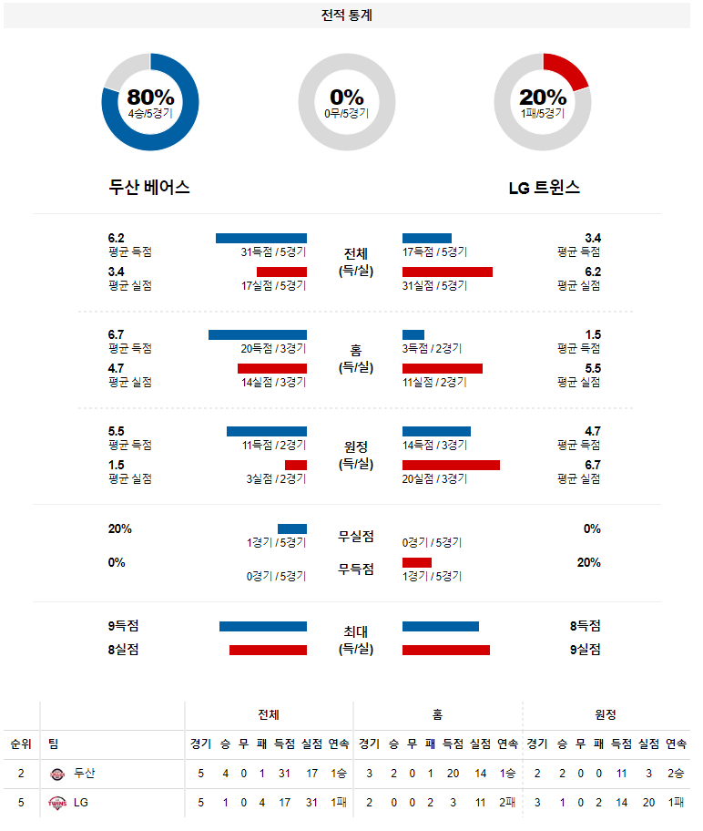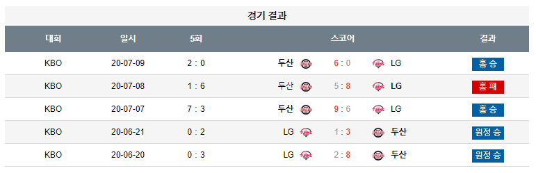 * 두산 vs LG, 상대전적 7 : 2 두산 우위