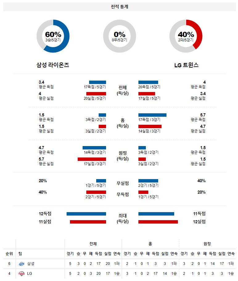 팀 리듬에서 삼성이 우위에 있고 백정현 투수를 만만하게 볼수 없지만 올시즌 선발 투수의 상대전 기록에 베팅 포커스를 맞춰야 하는 경기. LG 승리 가능성을 추천 한다.