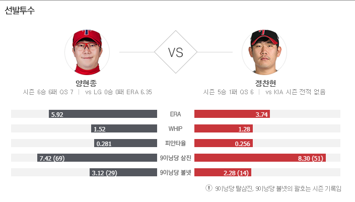 올시즌 첫 만남 에서는 아쉬움을 남겼지만 양현종 투수는 LG 좌타자 라인에게 강점을 보이며 상대전 짠물투구의 연속 이였다. LG 승리 가능성을 추천 한다.