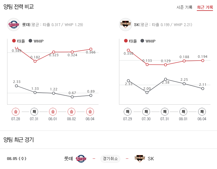 [이에스볼_KBO] 8월 6일 SK 롯데 국내야구 Esball 스포츠 분석