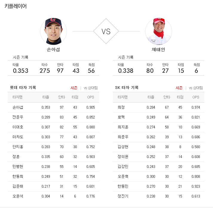 전일 경기에서는 롯데가 8-0 승리를 기록하며 시리즈 기선제압에 성공했다. 3연승 흐름 속에 36승35패 성적. 토종 선발진의 호투가 이어지면서 2경기 연속 무실점 경기를 했고 화요일 경기에서 타선은 15안타(1홈런)을 기록했다. 반면, SK는 6연패 흐름 속에 24승1무50패 성적. 선발 싸움에서 밀리면서 추격조 불펜을 가동할수 밖에 없었던 것이 대량실점의 빌미를 제공했고 의욕이 꺽인 타선은 4경기 연속 빈공에 그쳤다.
